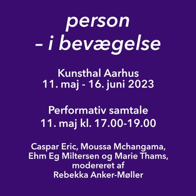 The fourth performative conversation in the project will take place at Kunsthal Aarhus on May 11 at 5-7 pm with Caspar Eric, Moussa Mchangama, Ehm Eg Miltersen and Marie Thams moderated by Rebekka Elisabeth Anker-Møller.