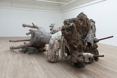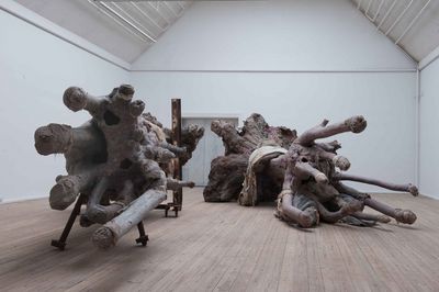 Den monumentale installation Embalmed – Twins, 2017 (2017) består af to faldne træer i voks, der ligger på gulvet som forkrøblede kæmper. De store træstammer med deres amputerede grene virker usædvanligt glatte – som var de afklædte, nøgne. Overfladen, pigmenteret af voks i lyse nuancer, skaber en livagtig lighed med det menneskelige kød. Vi kigger på to kæmpe kroppe, bandageret med klude og dækket af mugne tæpper. De ser ud til at dække dele af enorme relikvier, som er påført store håndtag, klar til at blive båret væk. Træernes styrke er afløst af skrøbelighed – som var de fastfrosset i en forvandlingsproces mellem kød og træ, mellem liv og død.